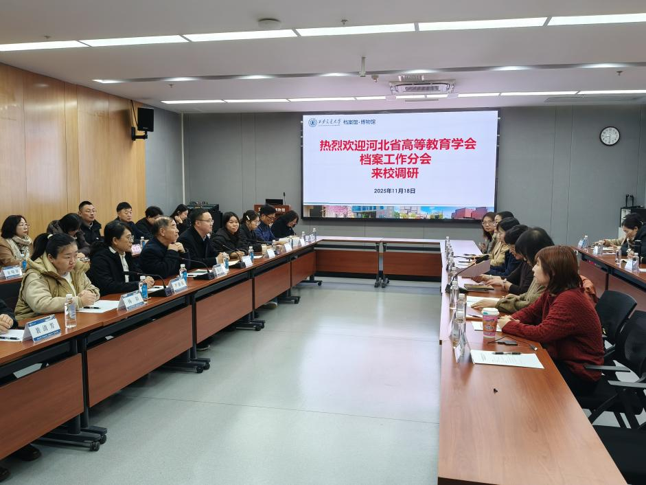 2025 年 11 月 18 日上午,河北省高等教育学会档案工作分会理事长吴广生,秘书长、燕山大学档案馆(校史馆)馆长逯宝峰带队,组织省内 28 所高校的 32 位档案管理骨干莅临西安交通大学调研交流。调研座谈会在交大西迁博物馆四层报告厅举行,由西安交大档案馆、博物馆副馆长石慧敏主持。